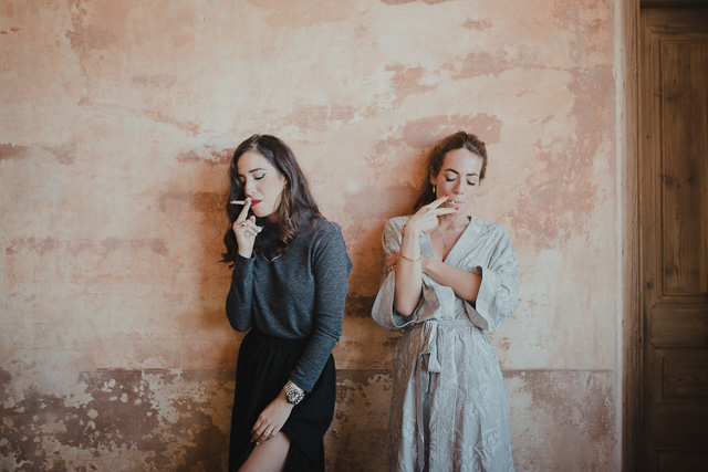 Una boda sin demasiado protocolo pero con mucho corazón como a nosotras nos gusta, en la que los novios se prepararon acompañados de sus más íntimos entre risas, pitis, bambalinas y muy buen rollo. No nos puede gustar más la idea de que tus amigos te acompañen durante los preparativos, aún más si tienen el atrevimiento de lucir una cazadora vaquera con “My half” bordado en letras negras.