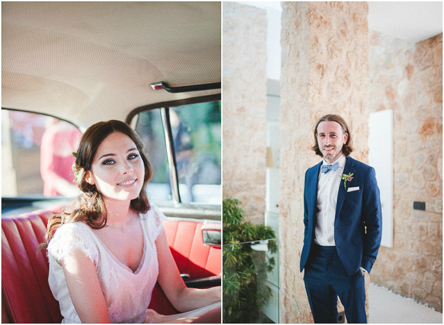Primero con el Mercedes vintage del 68 y después del brazo de su madre, Elisa llegó a la ceremonia en la que Miguel muy elegante de Anglomanía, con pajarita de Hacket y zapatos de Prada esperaba con el mediterráneo de fondo para intercambiarse los anillos que sellarían su unión en una ceremonia celebrada de forma bilingüe en inglés y castellano.