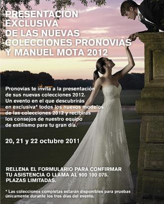 Estamos a mitad semana y qué mejor para coger fuerzas que apuntarse a descubrir la Nueva colección 2012 de Pronovias y Manuel Mota.