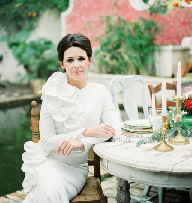 Y es que no hace falta ir lejos para encontrar los elementos más especiales para tu boda, el Made in Spain tiene suficientes proveedores, productos e ideas especiales para que tu gran día esté repleto de detalles maravillosos.En un un patio andaluz de vasijas de barro, naranjos, buganvilias, claveles y geranios se dibuja una novia cautivadora y elegante vestida de Juana Martín con el toque patrio de un mantón de manila.