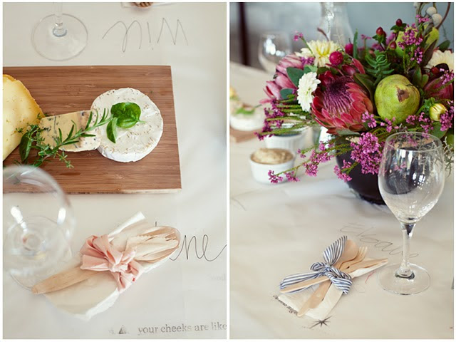 En el convite, cada mesa estaba presidida por un vaso de zumo de pera y vino, junto a una tabla de quesos, higos, nueces y pan. Un toque rural pero muy delicado que estamos seguras que causó sensación entre los invitados.